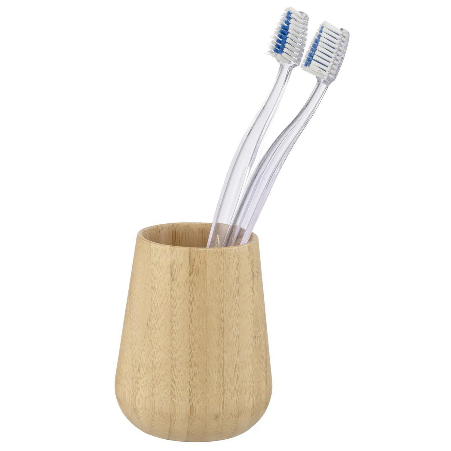Este vaso de bambú, con una altura de 10 cm y un ancho de 8 cm, es ideal para organizar tus cepillos de dientes o simplemente como un elemento decorativo. Su material de bambú le da un aspecto único y duradero. Incluye una unidad, perfecto para tu baño.