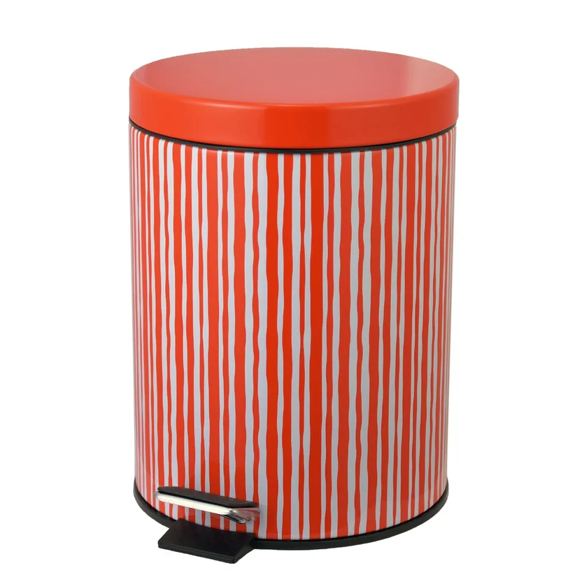 Dale un toque de estilo a tu baño con el basurero Raya de 5 litros. Su diseño moderno en rojo y verde con rayas verticales le dará un toque único a tu espacio. Con su práctico pedal, abrirlo será muy sencillo y cómodo. ¡No esperes más para tener este basurero que combina funcionalidad y estética!