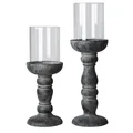 Dale un toque de elegancia y calidez a tu hogar con este portavelas de cemento negro. Su diseño clásico y sofisticado, con una altura de 47 cm y un ancho de 14.5 cm, lo convierte en un elemento decorativo ideal para cualquier ambiente. Perfecto para crear una atmósfera acogedora y relajante.