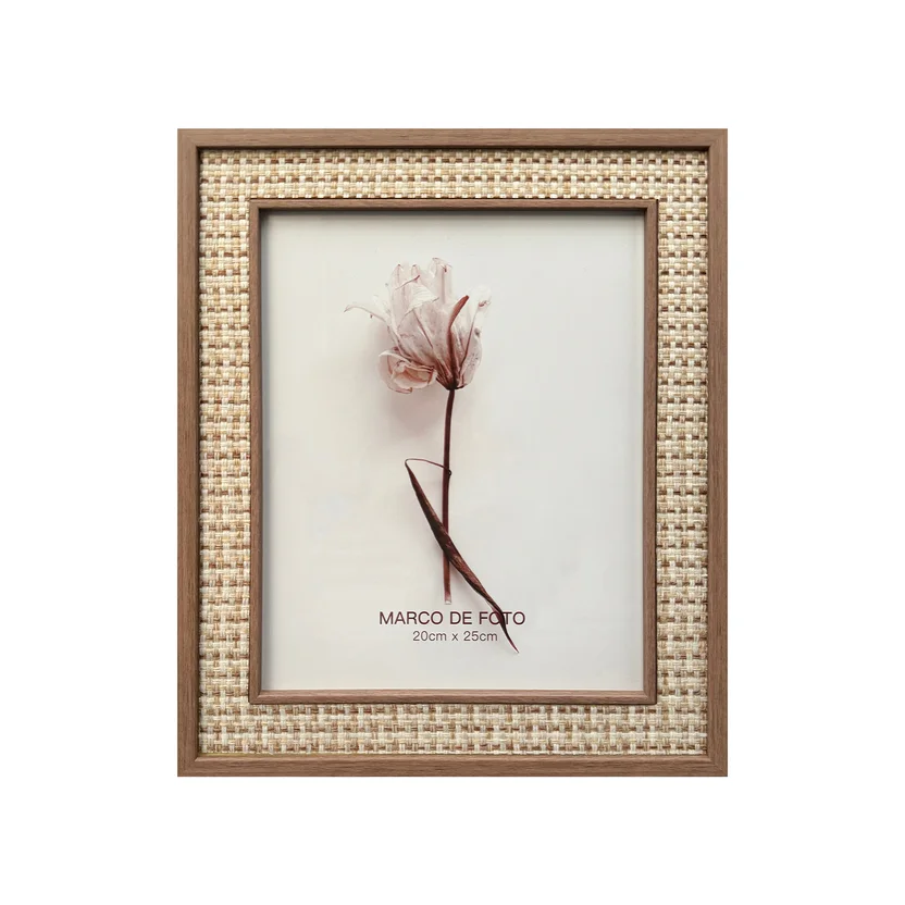 Este portarretrato tiene capacidad para una foto de 20x25 cm y está hecho de plástico. Su marco de foto presenta un estilo único que complementará tu decoración. El portarretrato incluye un soporte para que puedas colocarlo fácilmente sobre cualquier superficie.