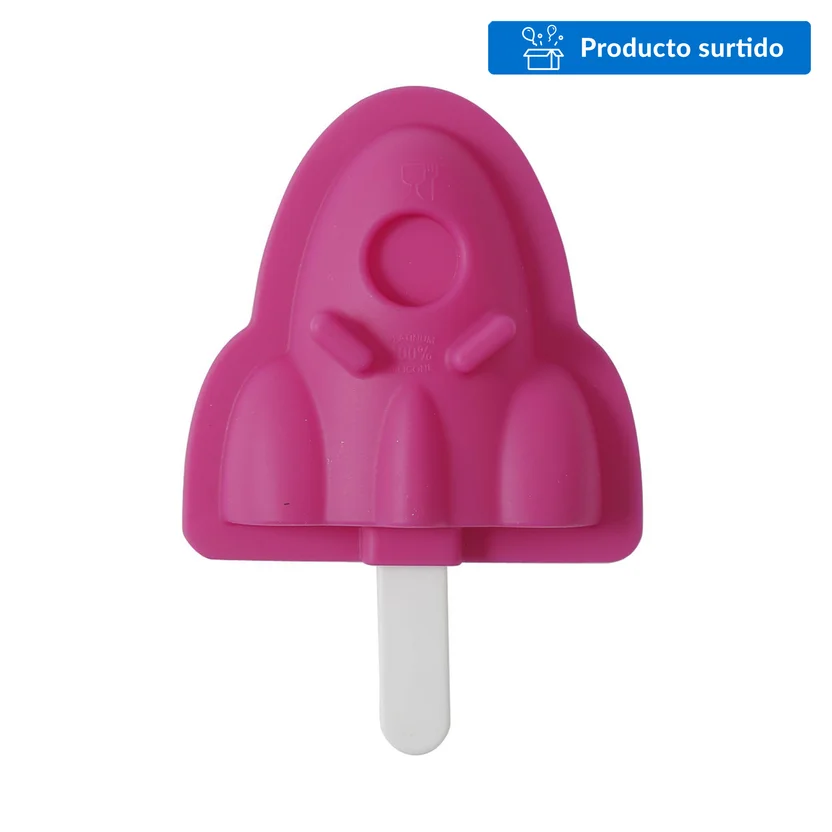 Este molde está fabricado en silicona, lo que facilita su uso y limpieza. Sus dimensiones son de 13 x 9 x 3 cm, y viene en varios colores, aunque el color que recibas será al azar. Incluye 1 unidad y es ideal para hacer helados con forma de cohete.