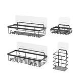 Cada organizador mide 30.5 cm de largo y 12.7 cm de ancho, con una altura de 7.9 cm. El set incluye 4 organizadores de distintos tamaños, ideales para guardar jabones, champús y otros artículos de baño. Fabricados en acero con un acabado mate negro, estos organizadores son resistentes y fáciles de limpiar.