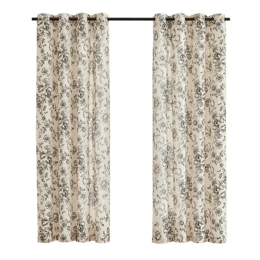 Cortina de tela Flor 140 x 220 cm natural y gris