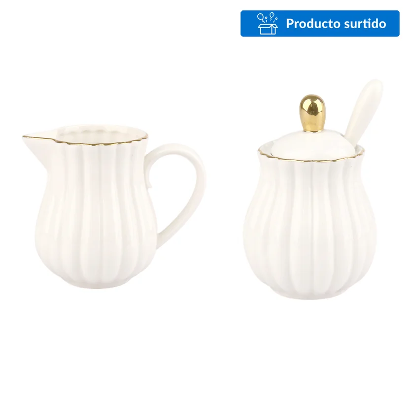 ¡Dale un toque vintage a tu mesa con el Set de azucarero y lechero Vintage! Este encantador conjunto de porcelana, con un diseño elegante y detalles dorados, es perfecto para agregar un toque de sofisticación a tus desayunos y meriendas. Incluye una lechera, una azucarera con tapa y cuchara, todo lo que necesitas para disfrutar de tus bebidas con estilo.