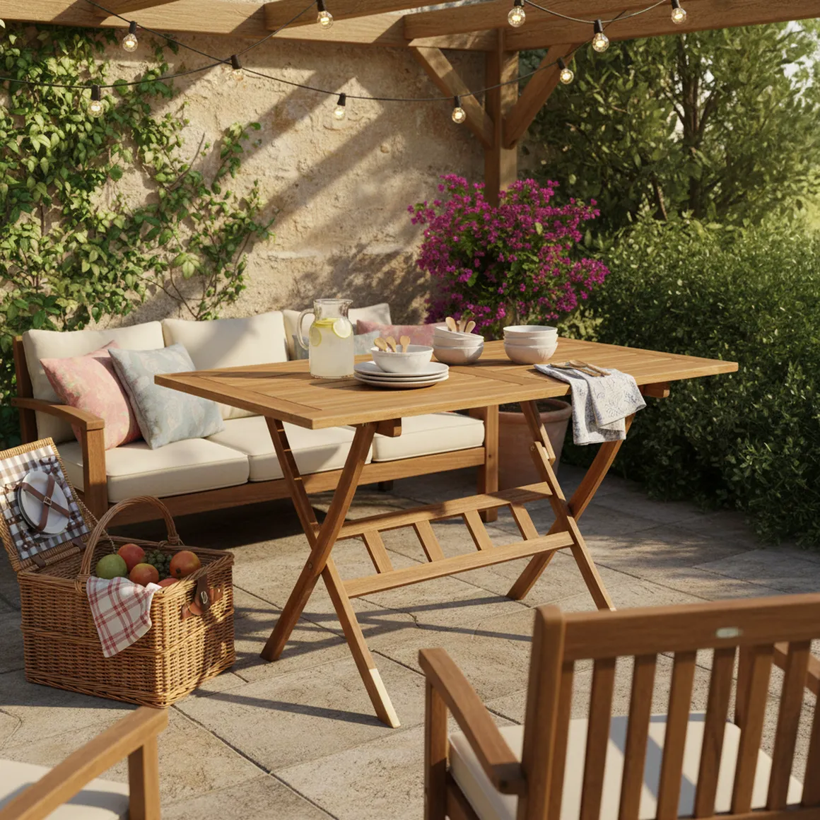 Complementa tu Mesa exterior plegable de plástico natural 120 x 70 cm