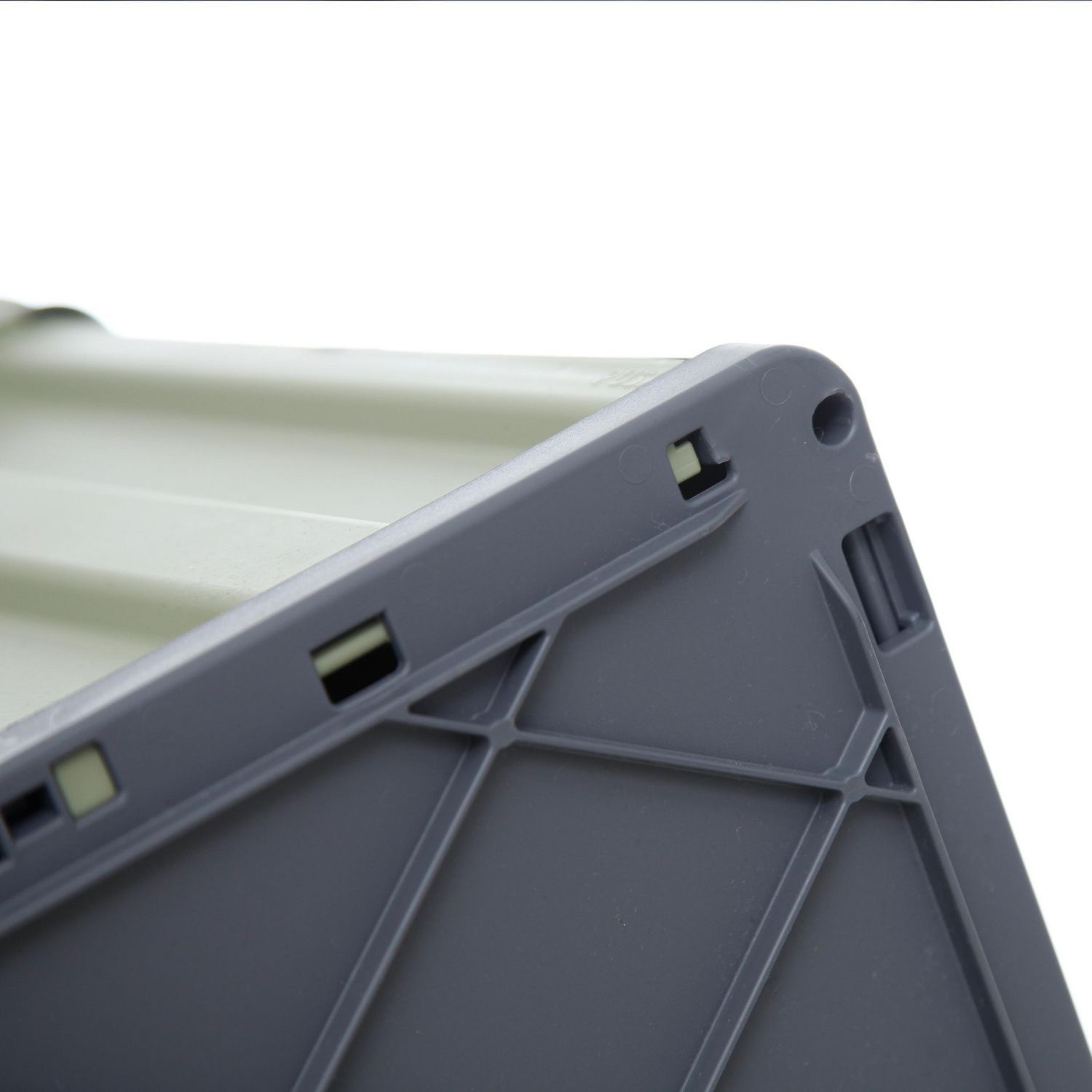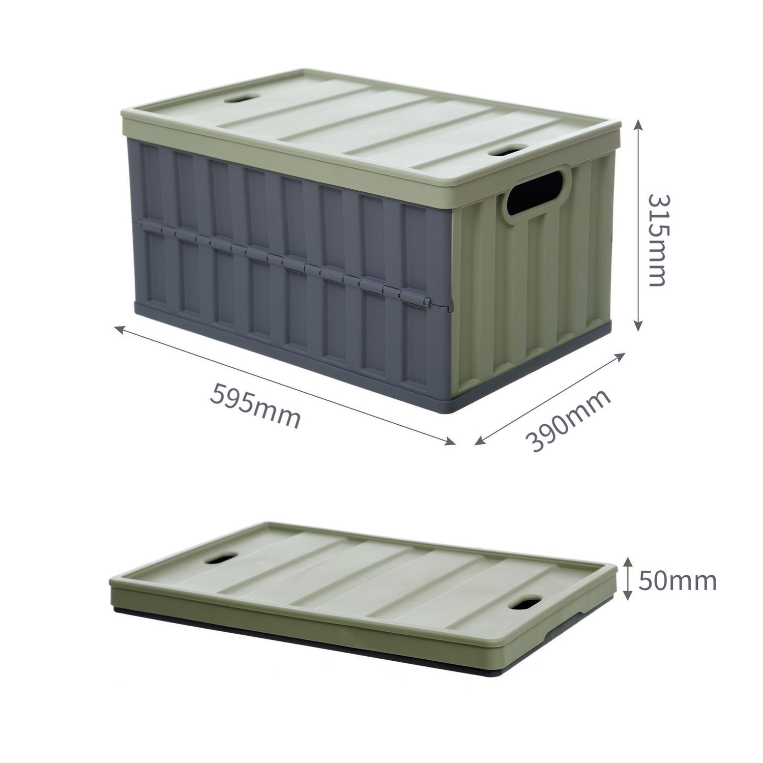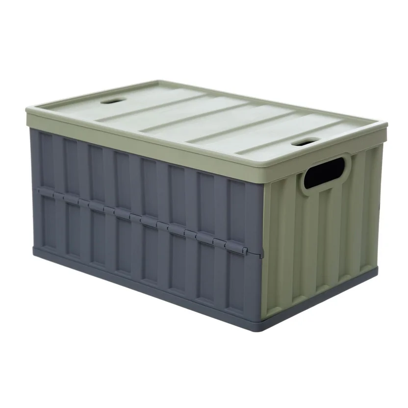 Caja organizadora de plástico plegable con tapa verde y gris 64 L
