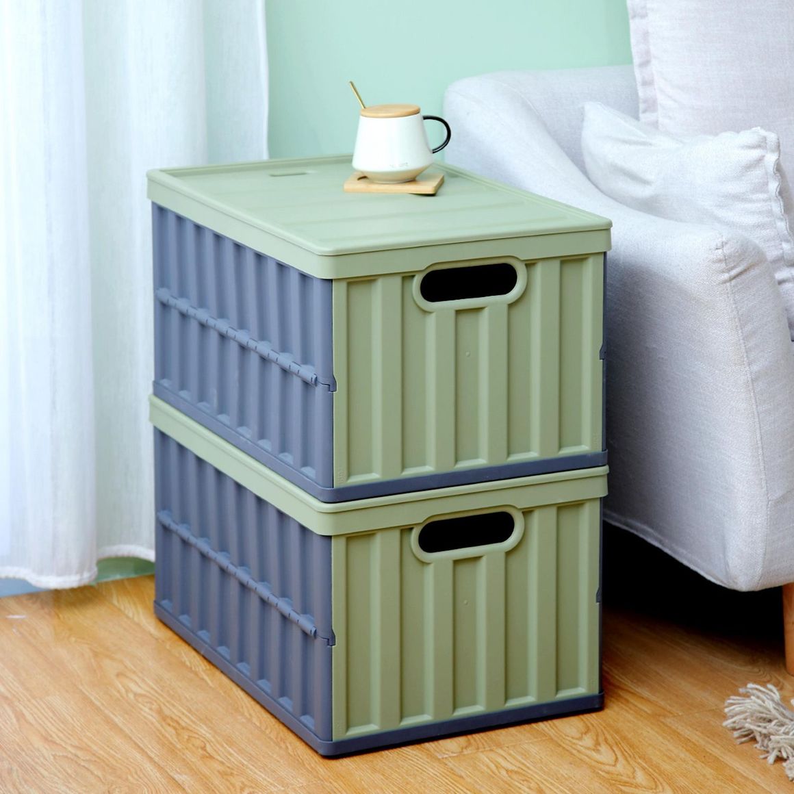 ¡Organiza tu hogar con estilo y practicidad! La Caja organizadora de plástico plegable con tapa verde y gris de 64 L es la solución perfecta para mantener tus espacios ordenados. Con su diseño moderno y funcional, esta caja te permite guardar tus pertenencias de manera eficiente y con un toque de color.