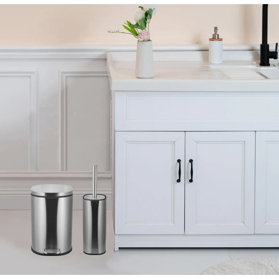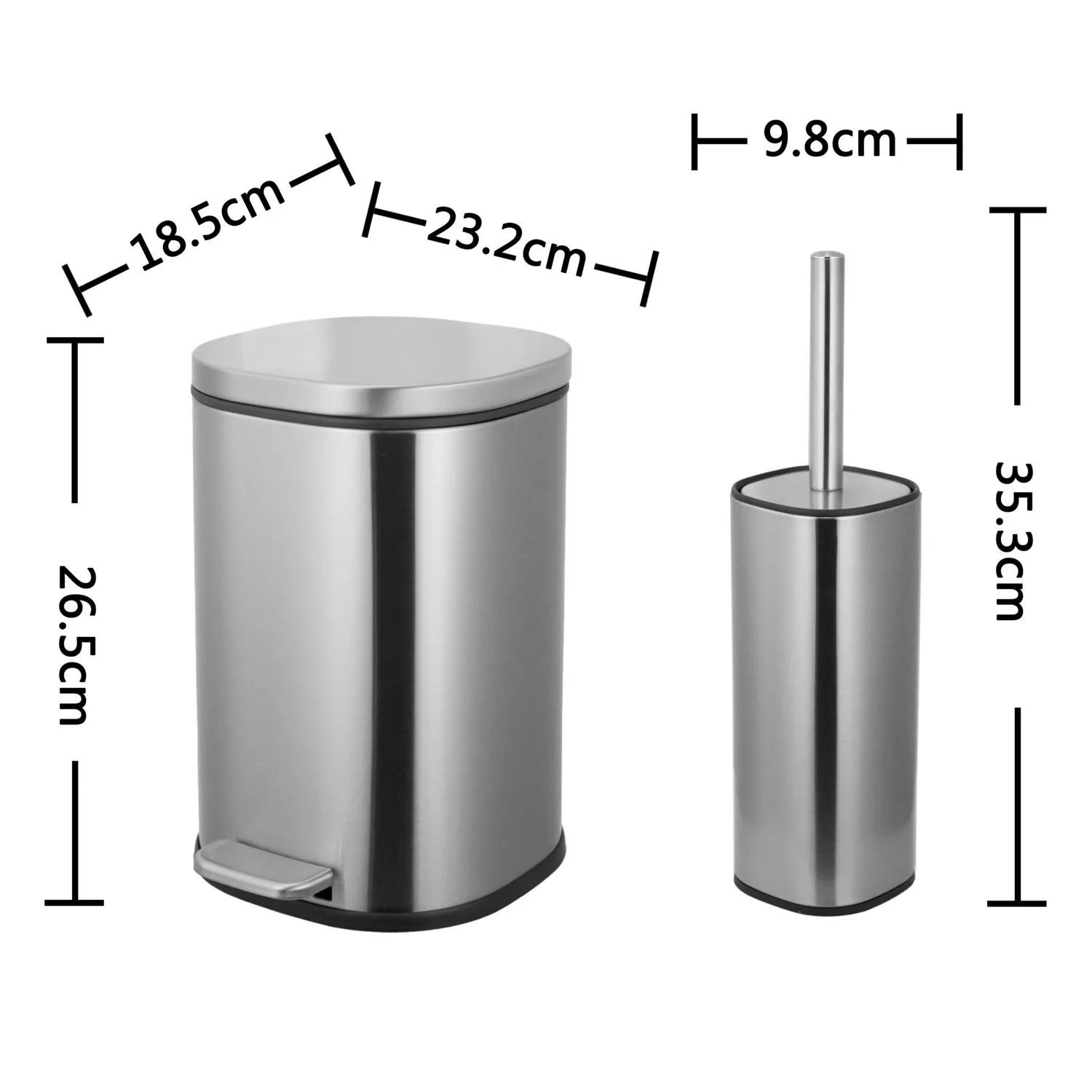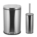 Set de basurero 5 L de metal a pedal y escobilla plateado