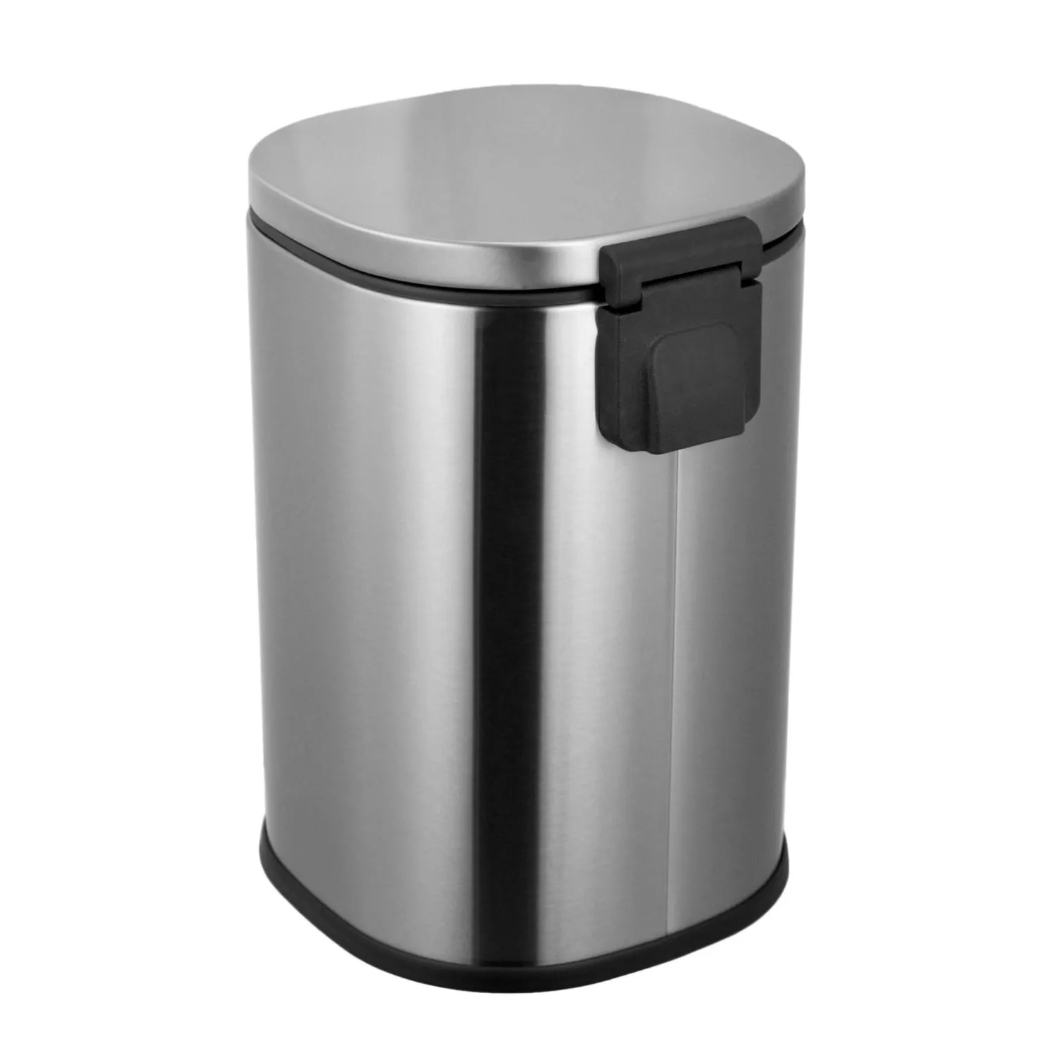 Este basurero a pedal, con una capacidad volumétrica de 5 l, cuenta con tapa para mantener los olores a raya. Su mecanismo de accionamiento es a pedal, lo que facilita su uso. El basurero tiene un ancho de 18.5 cm y un alto de 26.5 cm, ideal para espacios reducidos. El material es metal, lo que asegura durabilidad y resistencia.