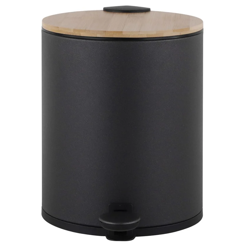 Dale un toque de estilo a tu baño con el Papelero de plástico Bamboo 5 L negro. Este basurero de pedal, con su diseño Vintage y tapa con cierre suave, es la combinación perfecta de funcionalidad y elegancia. Con una capacidad volumétrica de 5 l, es ideal para mantener tu espacio limpio y ordenado.