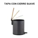 Este basurero de pedal cuenta con un mecanismo de accionamiento que facilita su uso. Sus dimensiones son de 28 x 25 x 25 cm, y está fabricado en plástico resistente. El modelo Bamboon, con su color negro, se adapta a cualquier estilo de baño. Además, su tapa asegura un cierre suave, y su diseño incluye un recipiente interno removible para una limpieza más sencilla.