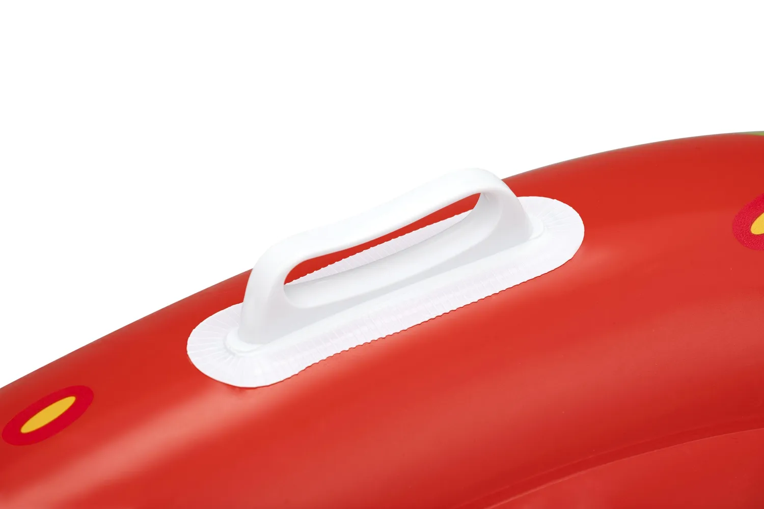 Este flotador inflable recreativo de la marca Bestway, modelo 42049, está fabricado en PVC resistente y cuenta con un diseño neutro. Incluye una tabla hinchable de piscina y un parche de reparación. Sus dimensiones son: 80 cm de largo, 52 cm de ancho y 16 cm de alto. Es ideal para niños de 3 a 8 años, con un estampado colorido y asas de alta resistencia para agarrarse. Además, es fácil de inflar, desinflar y almacenar.
